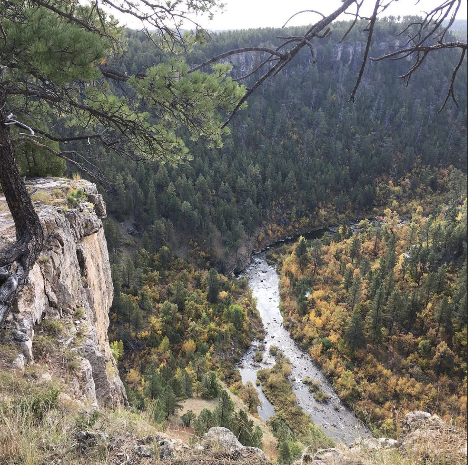 JI: When I first got there and realized that we were at the edge of the Black Hills, I started doing a ton of research about it. And I had some superficial knowledge of all that you just mentioned, but I really jumped in on some of it. It’s fascinating. I didn’t necessarily think that way while I was out there every day for five hours, but there was definitely something special about being out there. I was out there for seven months; and I’d go from maybe 8:30 [in the morning] to about 1 pm. Not once was it too cold to go out there; and I started in March and I ended in October. So not once did I have to miss it because it was too cold. Not once did I get rained out. Even if there were clouds, [the rain] would hold off and then pour later. I would sit on this rock that came to be my third home out there. I would just check out the landscape. And it was a life-changing experience to get to do that day after day and see how over the course of the seasons the view changed and the trees change. I felt some of that [the connection between the environment and spiritual practice] and I interpreted my own way. There is something special about that area.