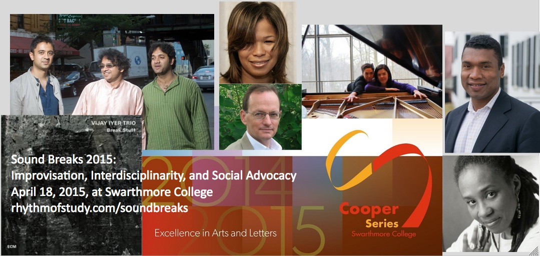 “Sound Breaks” will take place on the campus of Swarthmore College on Saturday, April 18, 2015, when invited scholars and performers will visit Swarthmore for a day-long symposium on improvisation and the liberal arts. Students and faculty will explore disciplinary-specific applications of improvisation through a series of workshops and talks to be hosted by several departments across campus, including Black Studies, English, Music & Dance, Philosophy, and Physics. These renowned academic scholar/teacher/performers will visit with and work alongside students in these workshops, drawing together common themes from their research, related Swarthmore course curricula, and the Symposium’s goals. They will share their research on musical improvisation, on applications of improvisation beyond the arts, and on the ethical imperatives of collaborative and community-based research. This integrated approach to academics and advocacy is a hallmark of Swarthmore College’s mission. And so “Sound Breaks” will be a unique opportunity for Swarthmore students to work alongside their faculty and invited scholars from around the U.S. who are modeling the interdisciplinary, community-based work they are taught in classrooms everyday.